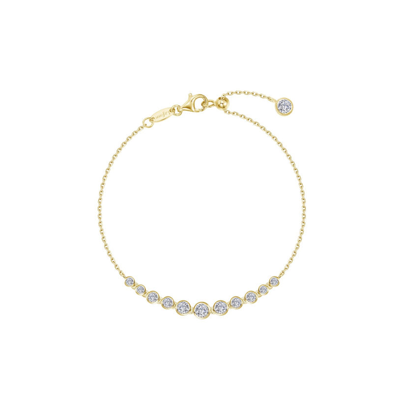 An everyday reminder of new beginnings and endless possibilities. This bracelet features  11 bezel-set stones that gradually grow, reflecting the sun's gentle rise along the horizon. Crafted with precision, it adds radiance and balance to any look. Set with Lafonn's signature Lassaire simulated diamonds in sterling silver plated with gold.