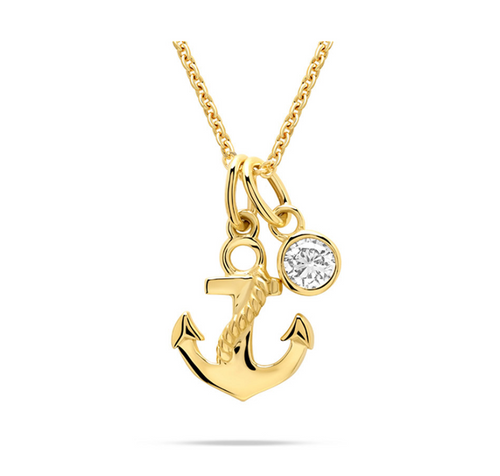 Deep Blue 14kt Gold Lab Diamond Anchor Necklace