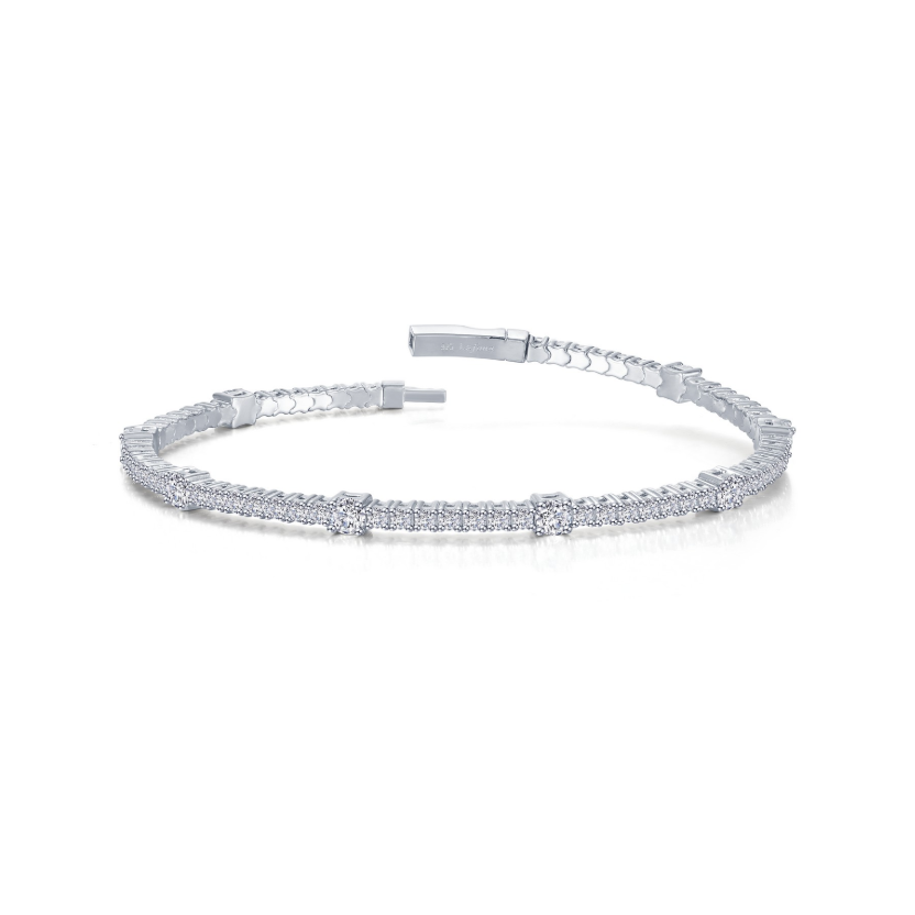 Constructed with comfort and glamor in mind, this flexible station tennis bracelet is set in Lafonn's signature Lassaire simulated diamonds in sterling silver bonded with platinum.