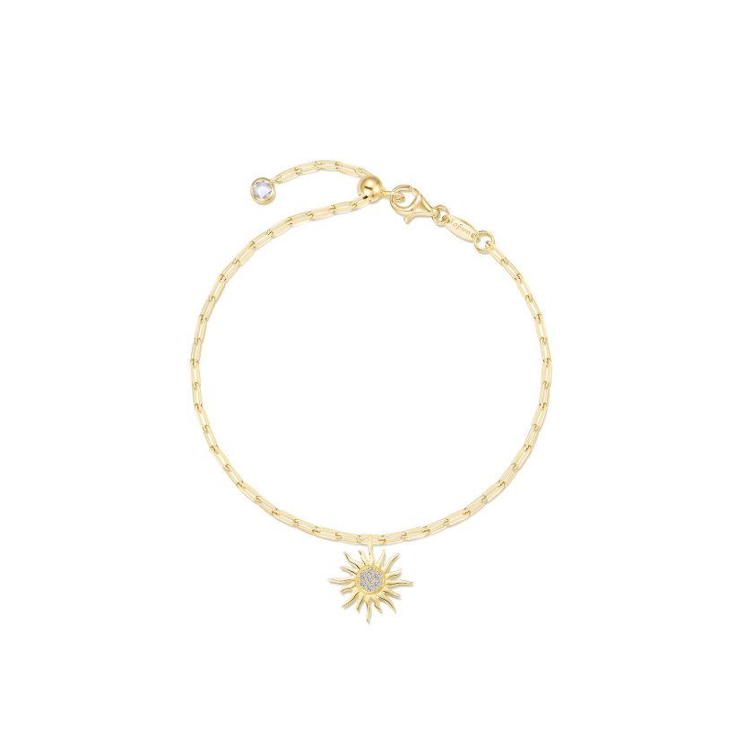 Meet your everyday source of glow. The Golden Hour Paperclip Charm Bracelet features a dainty paperclip chain accented with a golden sun charm, symbolizing warmth, creativity, and radiant energy. Lightweight and effortlessly chic, it layers beautifully with other favorites or shines on its own as a signature piece. Set with Lafonn's signature Lassaire simulated diamonds in sterling silver and finished with Lafonn's exclusive TR Gold plating, a new and improved process that preserves the rich color of gold and enhances its brilliance.