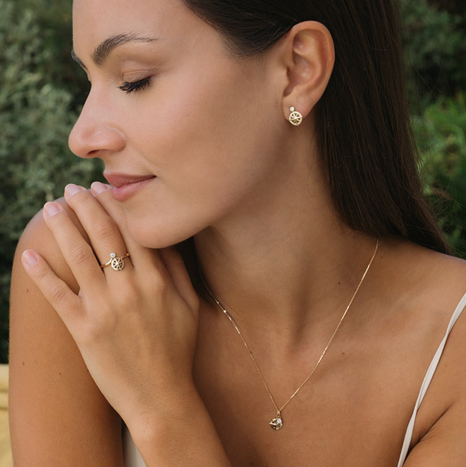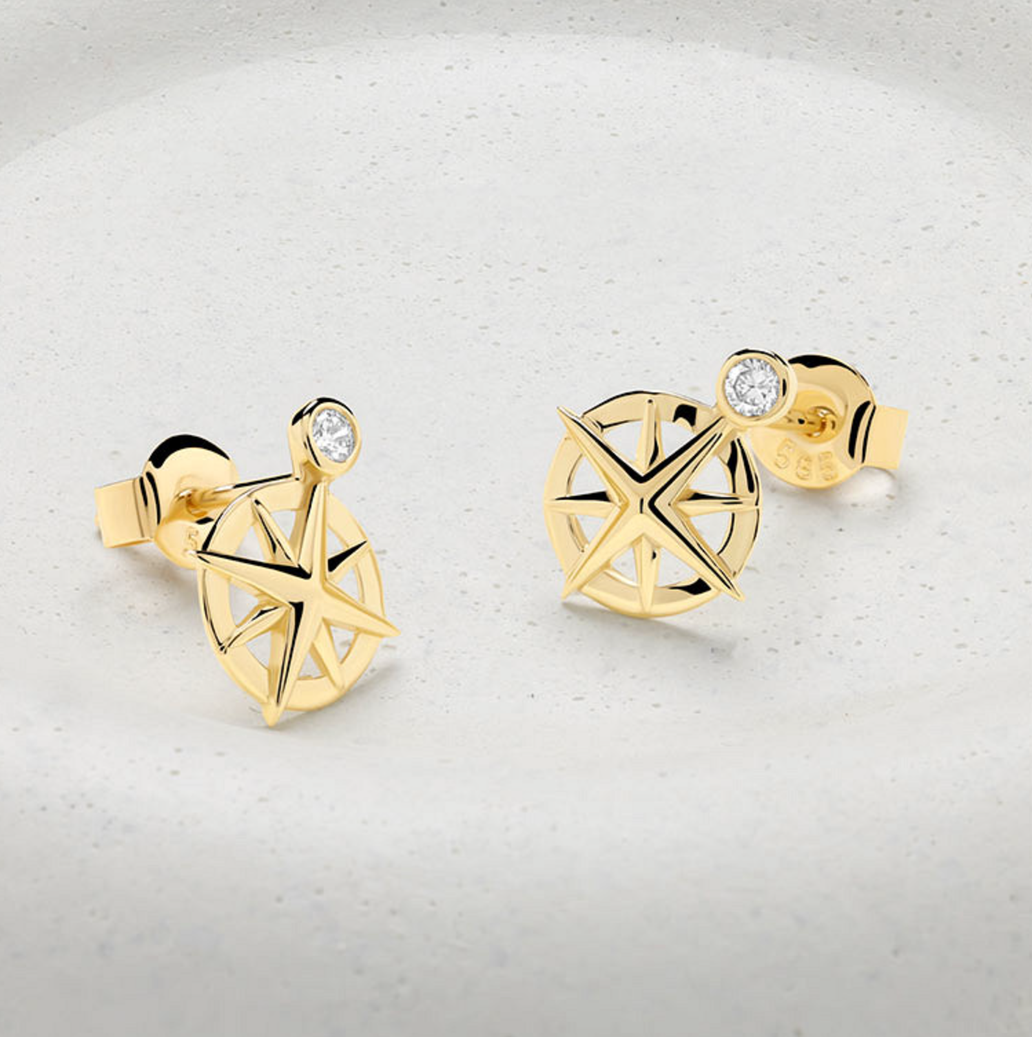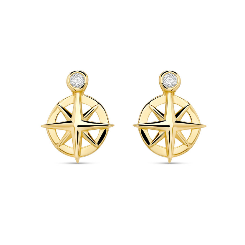Crafted in luminous 14kt gold, these mini ship's wheel earrings feature a radiant bezel-set lab-grown diamond above each charm, echoing the guarding light of the sea. The openwork design gives a refined nautical look with a lightweight, elegant feel.