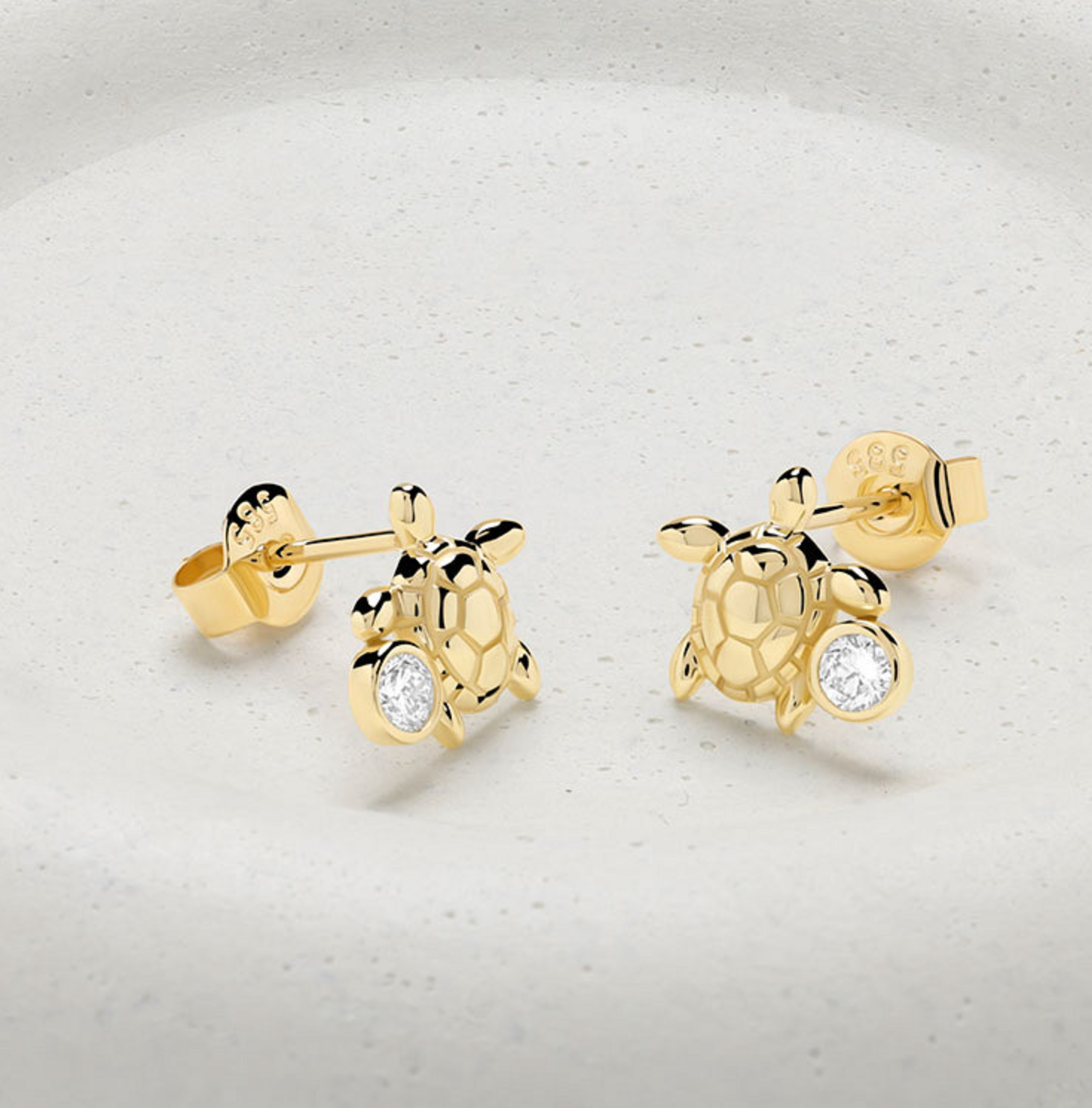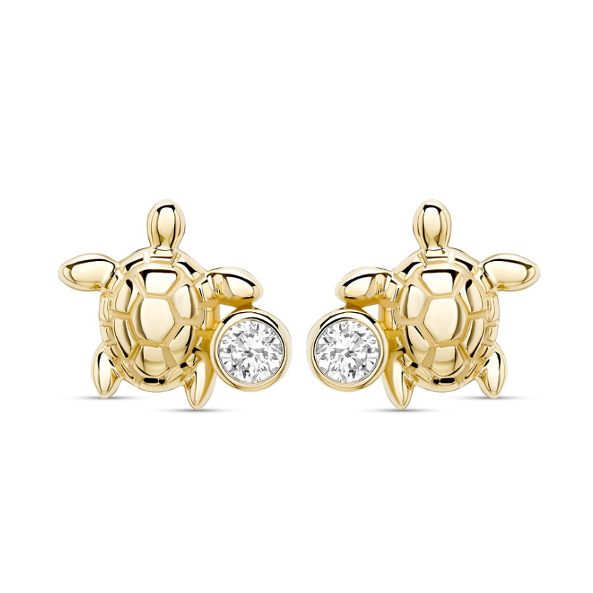 Crafted in 14kt gold, these stud earrings feature mini turtle motifs accented with bezel-set lab-grown diamonds. Their polished finish and petite design bring a subtle yet charming ocean touch. Designed for everyday wear or thoughtful gifting.