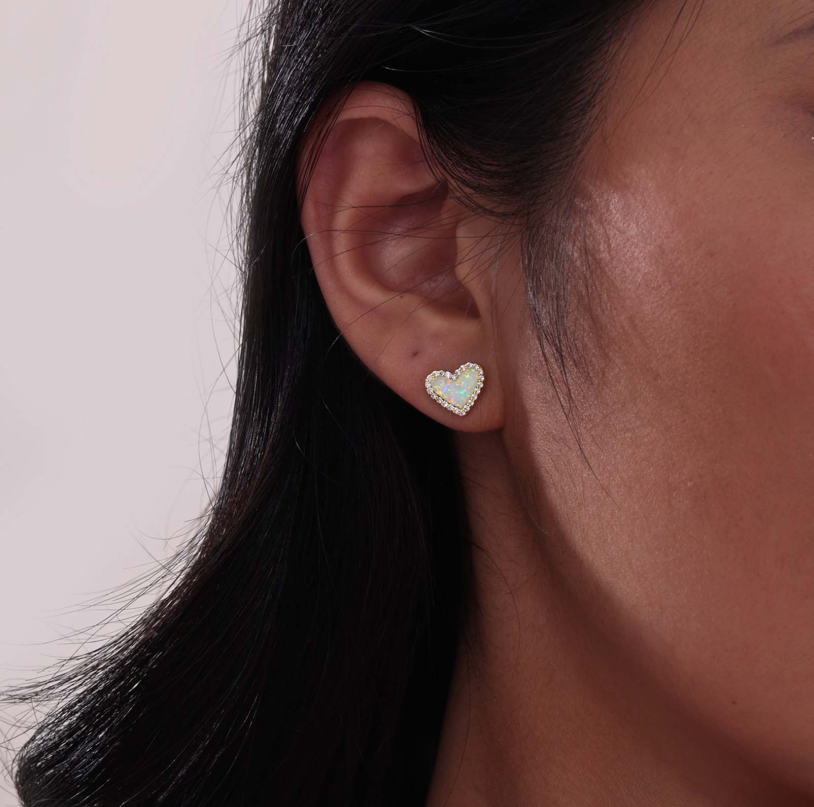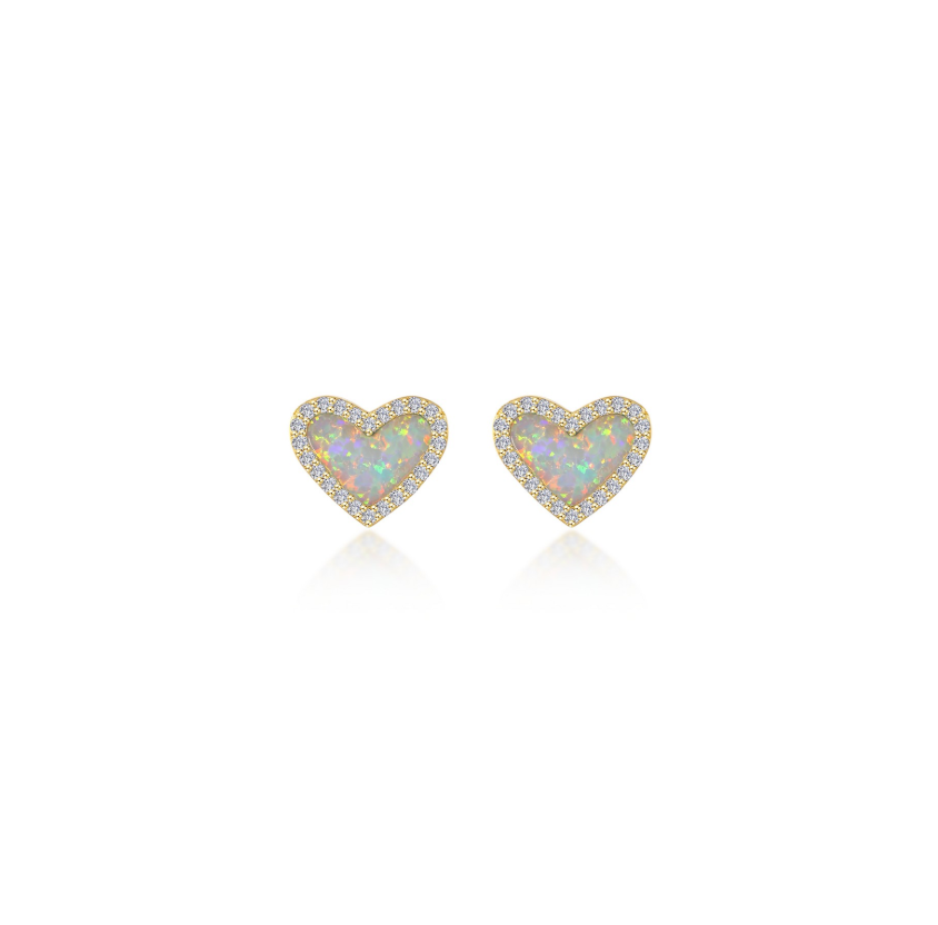 Timeless elegance. These halo heart stud earrings feature simulated opals surrounded by Lafonn's signature Lassaire simulated diamonds in sterling silver using Lafonn's exclusive TR Gold, a new and improved plating process that preserves the rich color and enhances the wearability of gold-plated styles.