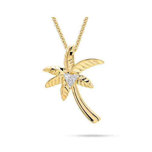 Deep Blue 14kt Gold Lab Diamond Palm Tree Necklace