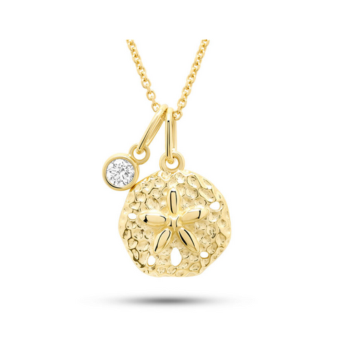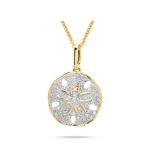 Deep Blue 14kt Gold Lab Diamond Sand Dollar Necklace