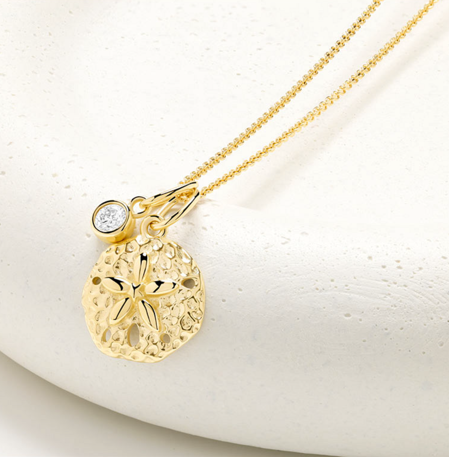 A miniature treasure from the sea, this sand dollar necklace is cast in 14kt gold and finished with a brilliant lab-grown diamond for subtle sparkle. The textured surface brings a lifelike feel to the iconic sand dollar shape, while the mini scale adds delicate charm.