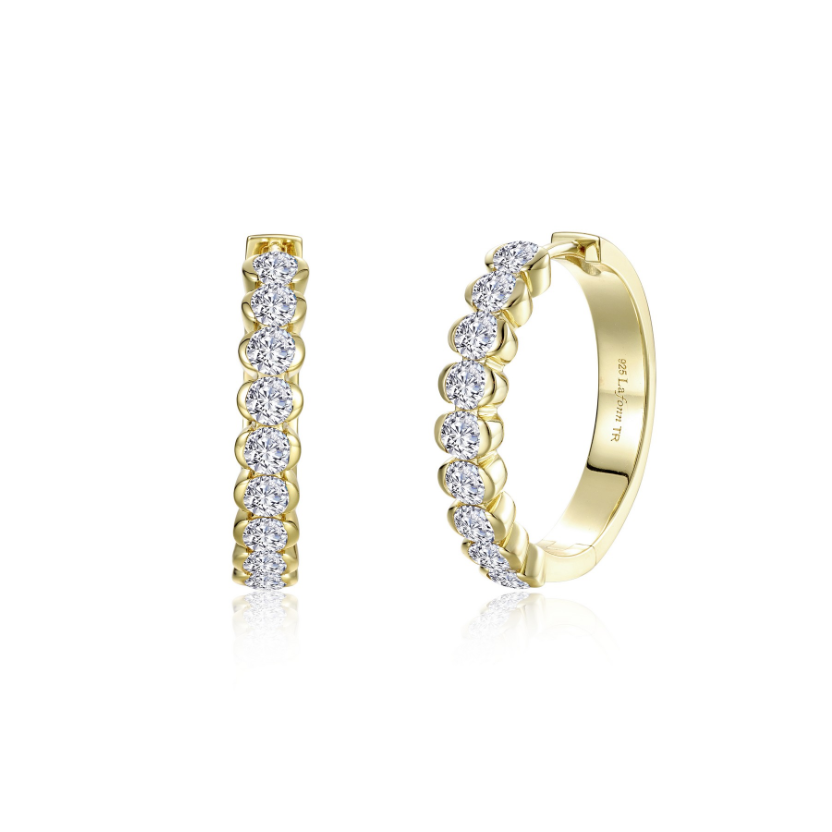 Partially set, perfectly brilliant. The large Willow Hoop Earrings are inspired by the flowing elegance of willow branches. Semi-bezel set stones catch the light beautifully, creating a subtle, nature-inspired statement perfect for everyday wear or special occasions. Set with Lafonn's signature Lassaire simulate diamonds in sterling silver and finished with Lafonn's exclusive TR Gold plating, a new and improved process that preserves the rich color of gold and enhances its brilliance.
