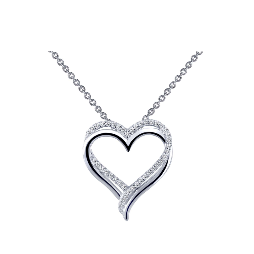 Elegant and stylish. This double heart pendant is set with Lafonn's signature Lassaire simulated diamonds in sterling silver bonded with platinum. The pendant comes on an adjustable 18" chain.