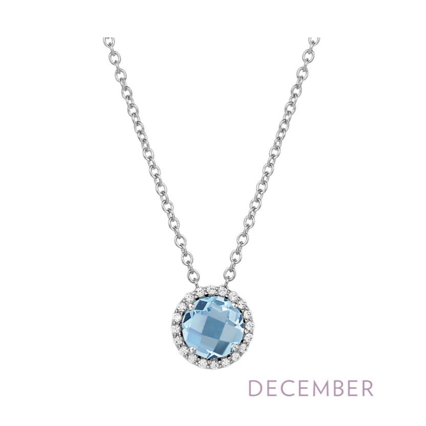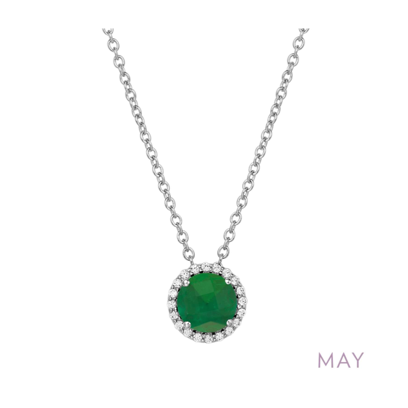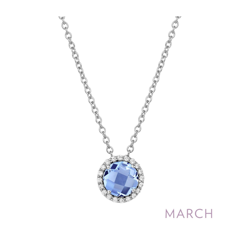 September - Sapphire. Adorn yourself with Lafonn's birthstone jewelry. The necklace is set with a lab-grown sapphire surrounded by Lafonn's signature Lassaire simulated diamonds in sterling silver bonded with platinum.