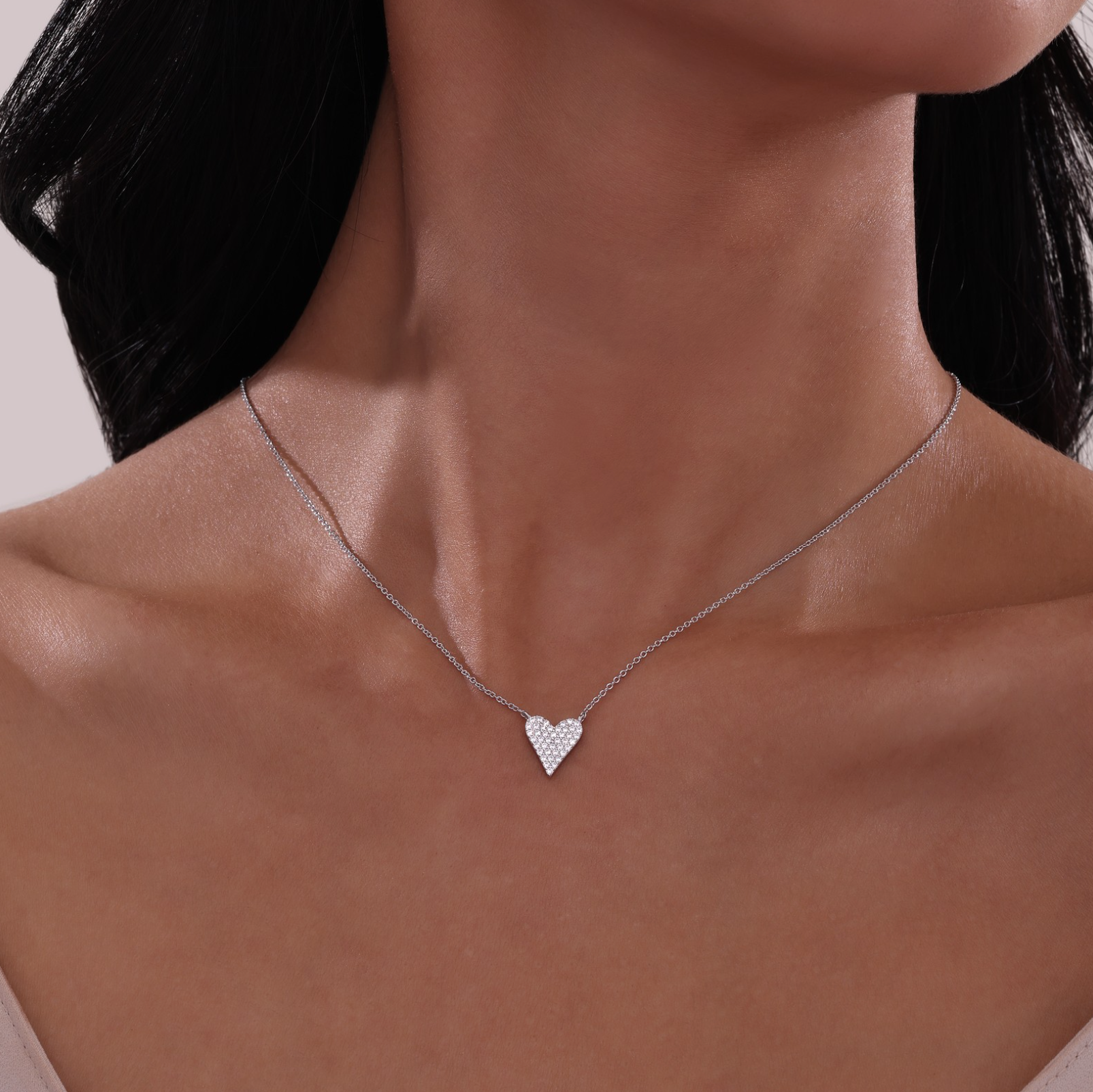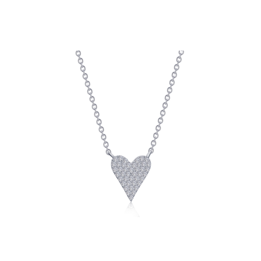 Simple and chic. This charming adjustable pave heart necklace is set with Lafonn's signature Lassaire simulated diamonds in sterling silver bonded with platinum.