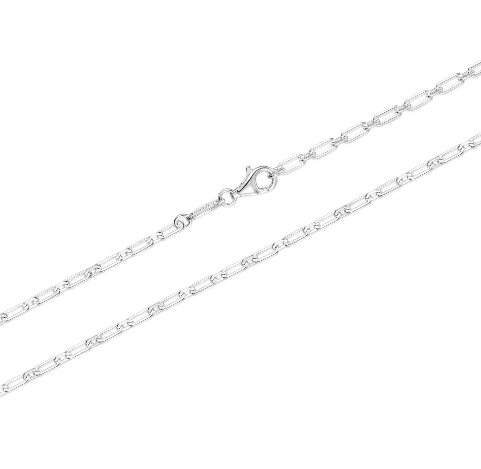 The Charlie chain in small is a sleek and timeless paperclip necklace designed for effortless elegance and everyday versatility. Crafted from Sterling Silver bonded with platinum, this modern classic is perfect for layering or wearing solo. Measuring 20 inches in length and finished with a secure lobster clasp.