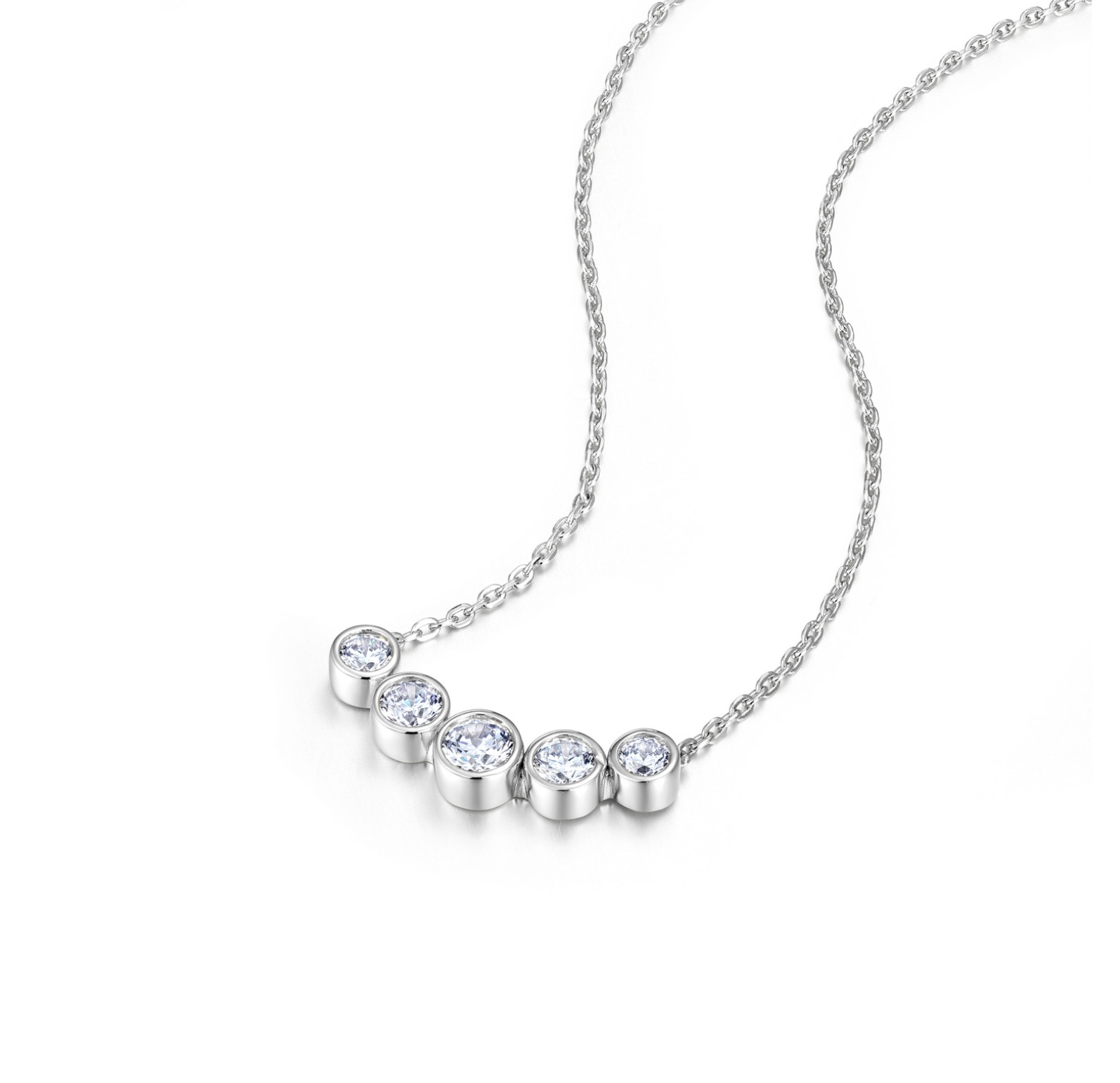 Complete the look with the Olive Bezel Necklace, featuring graduated stones in full bezel settings along a sleek chain. Designed to catch the light with every movement, this necklace pairs effortlessly with the Olive Ear Climbers or stands alone as a modern statement piece. Set with Lafonn's signature Lassaire simulate diamonds in sterling silver bonded with platinum.