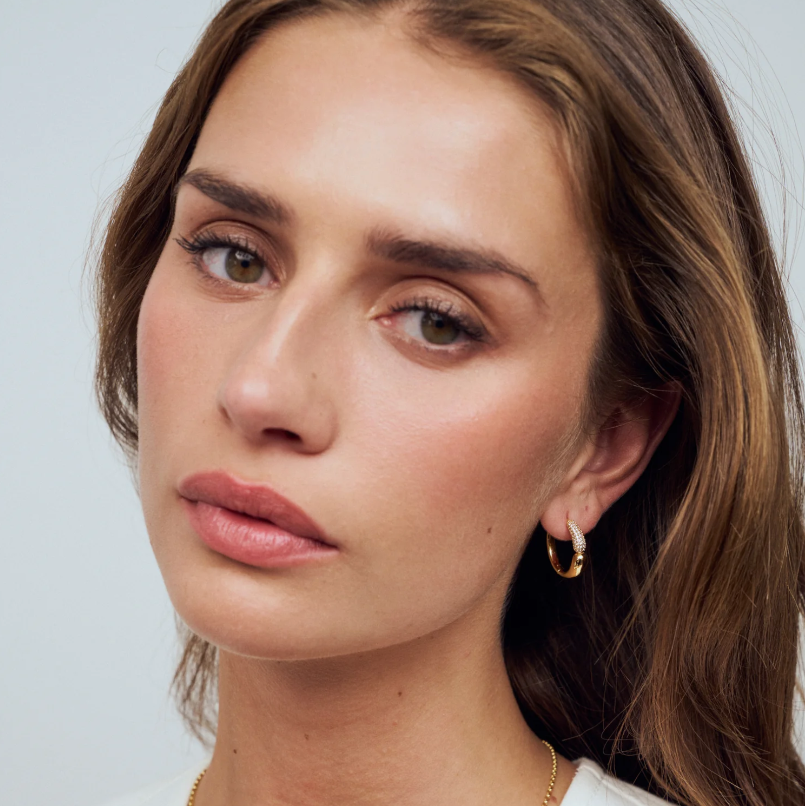 Earrings made of 18k gold plated 925 sterling silver, a polished surface, and handset with facet cut white zirconia.