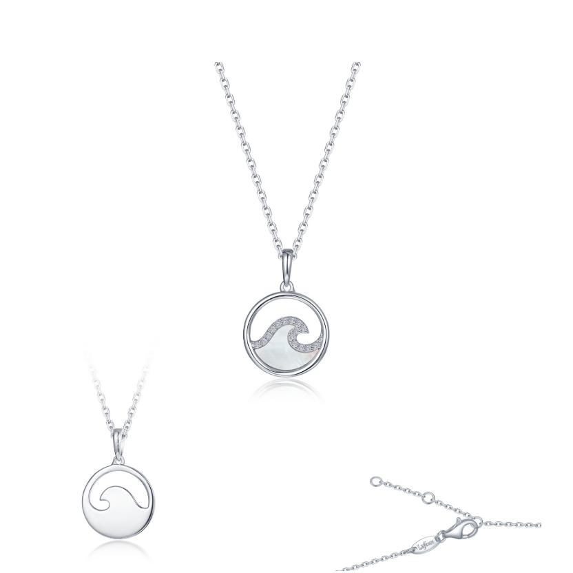 Inspired by the Ocean's rhythm, the Seafoam Pendant captures the graceful flow of waves. Crafted in sterling silver bonded with platinum, it features Lafonn's signature Lassaire simulated diamonds and luminous mother of pearl.