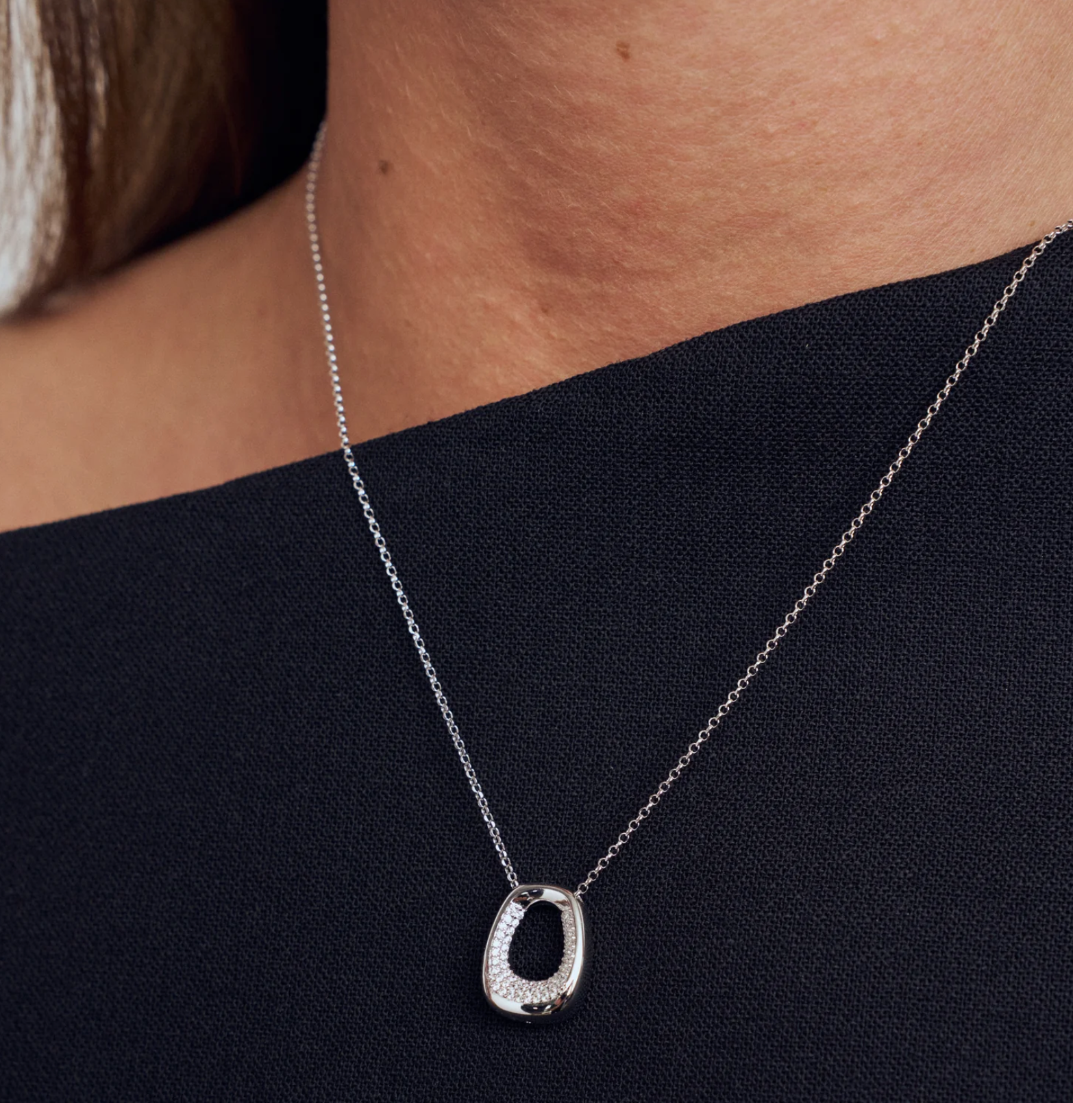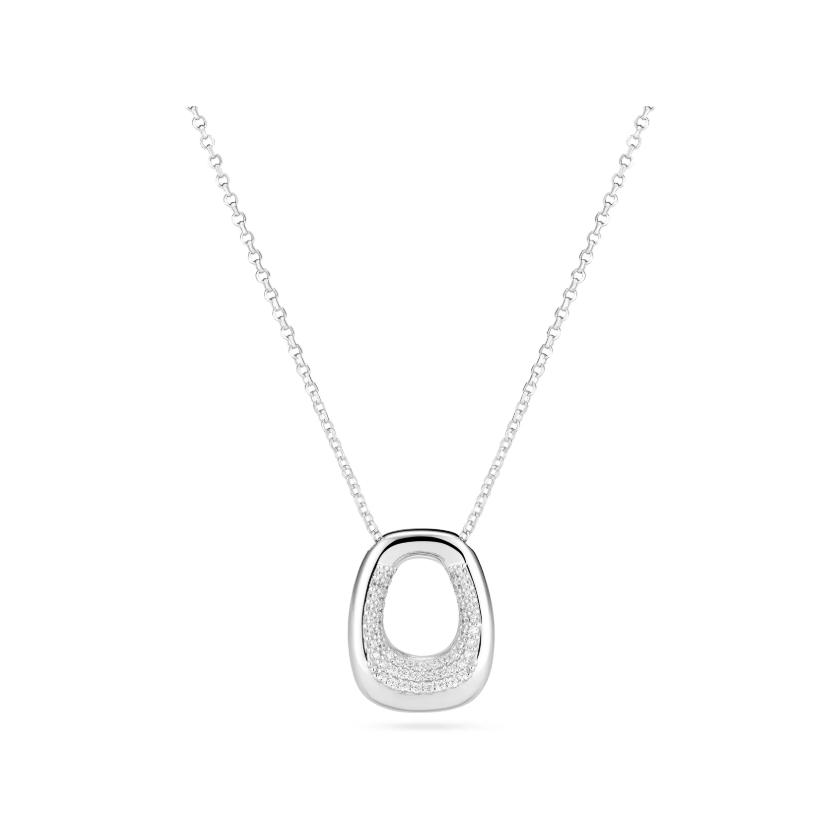 Necklace made of rhodium plated 925 Sterling Silver with a polished surface, and handset with facet cut white zirconia.