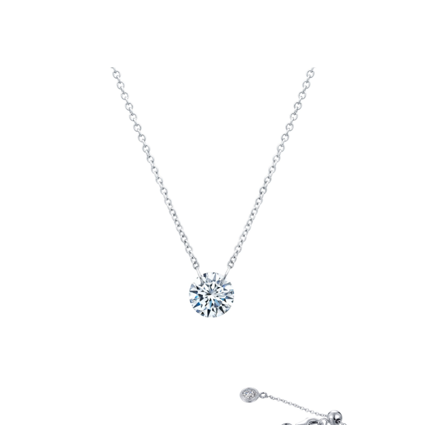 Mesmerizing shimmer. This classic frameless necklace features a 1 carat Lassaire simulated diamond in sterling silver bonded with platinum combined with 14-karat gold components.