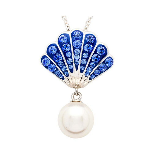 Ocean SS Pearl/Sapphire Crystal Shell Necklace
