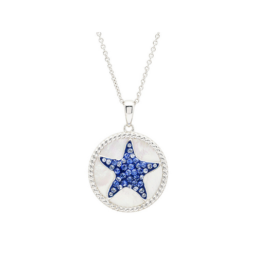 Ocean Sterling Silver Sapphire Crystal MOP Star fish Necklace