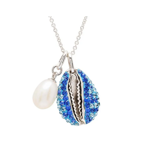 Sterling Silver Crystal/Pearl Cowrie Shell Necklace