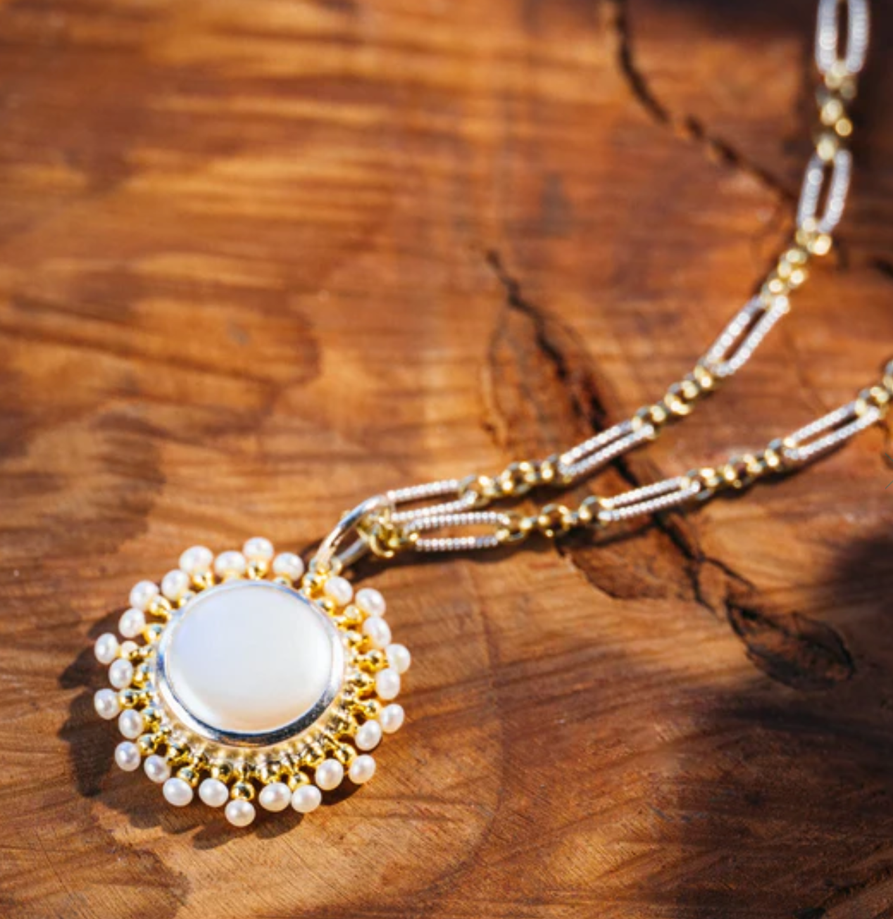 Not gonna lie - this one is just sensational. A Sterling Silver Sun hand wrought with a lustrous Pearl center and bursting with warm shine, our Bring the Glow pendant is an updated pearl classic - a new essential to wear that reflects your inner radiance.