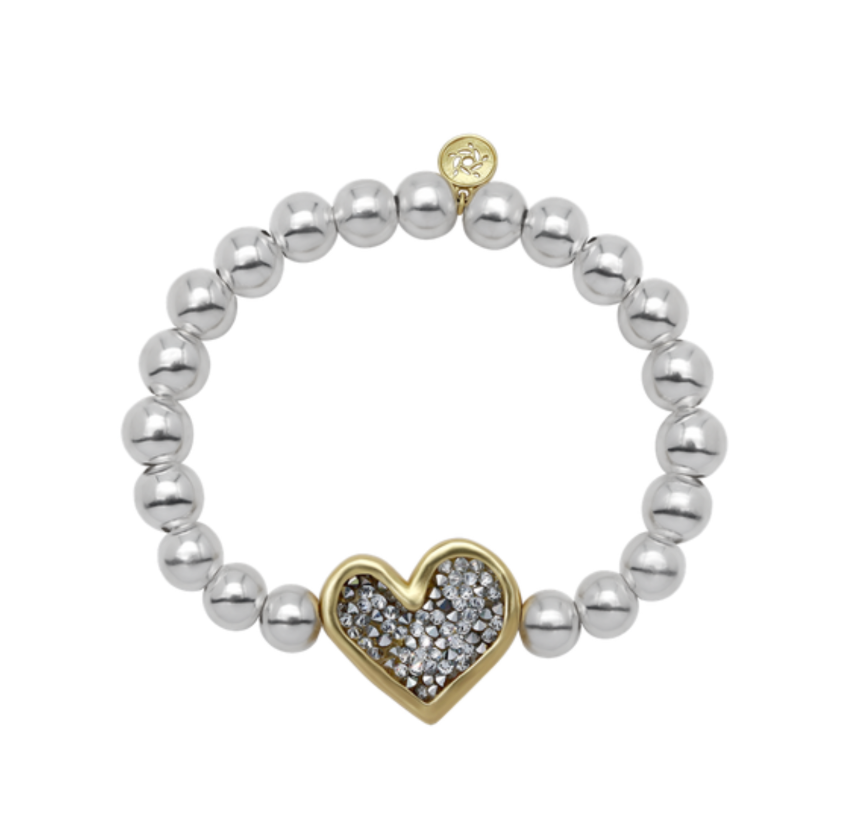 An Abundant Heart and a generous life spirit deserves to be recognized, and that is why we created the Kristal Life Abundant Heart Stretch Bracelet. Slip on this handmade beauty that features a Brass Heart filled with Crystals surrounded by Silver Plated Brass beads and shine on!
