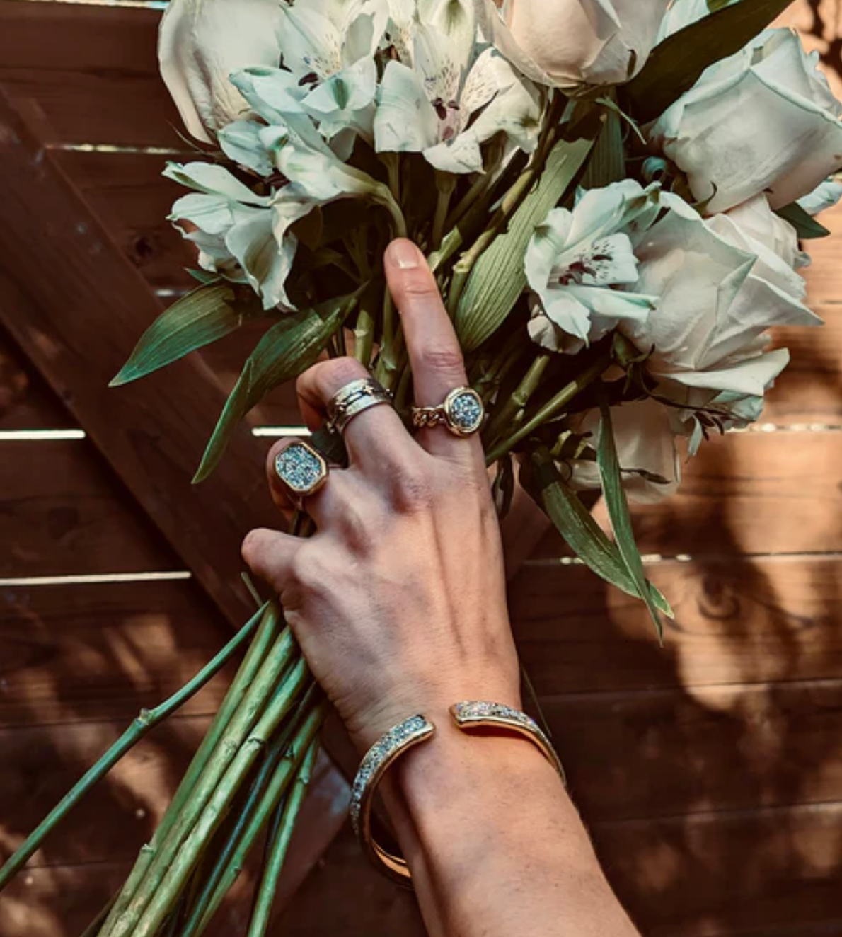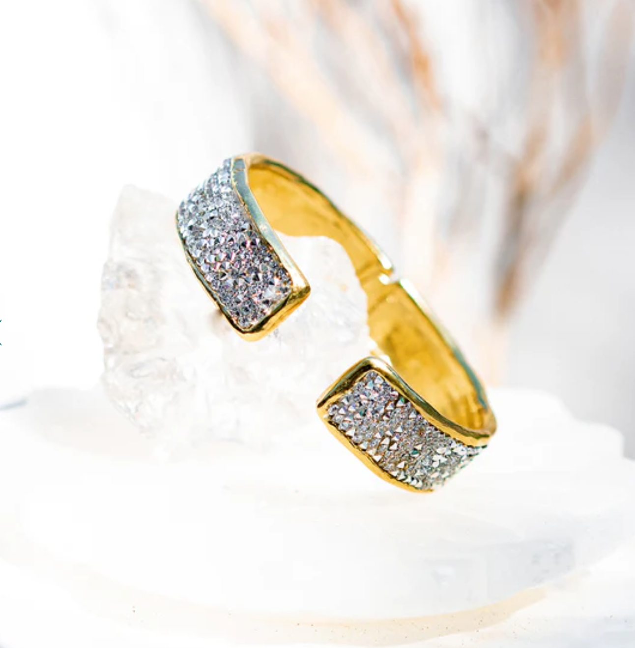A symphony of elements and the way they come together. This is the vibrant and comfortable magic of Harmony, our newest rendition of beloved classic Kristal Cuff. With the addition of hinge, we offer you an oh-so-wearable way to shine with ease. So do! Stay grounded, brightly. Manifest that inner light, and amp up the world.