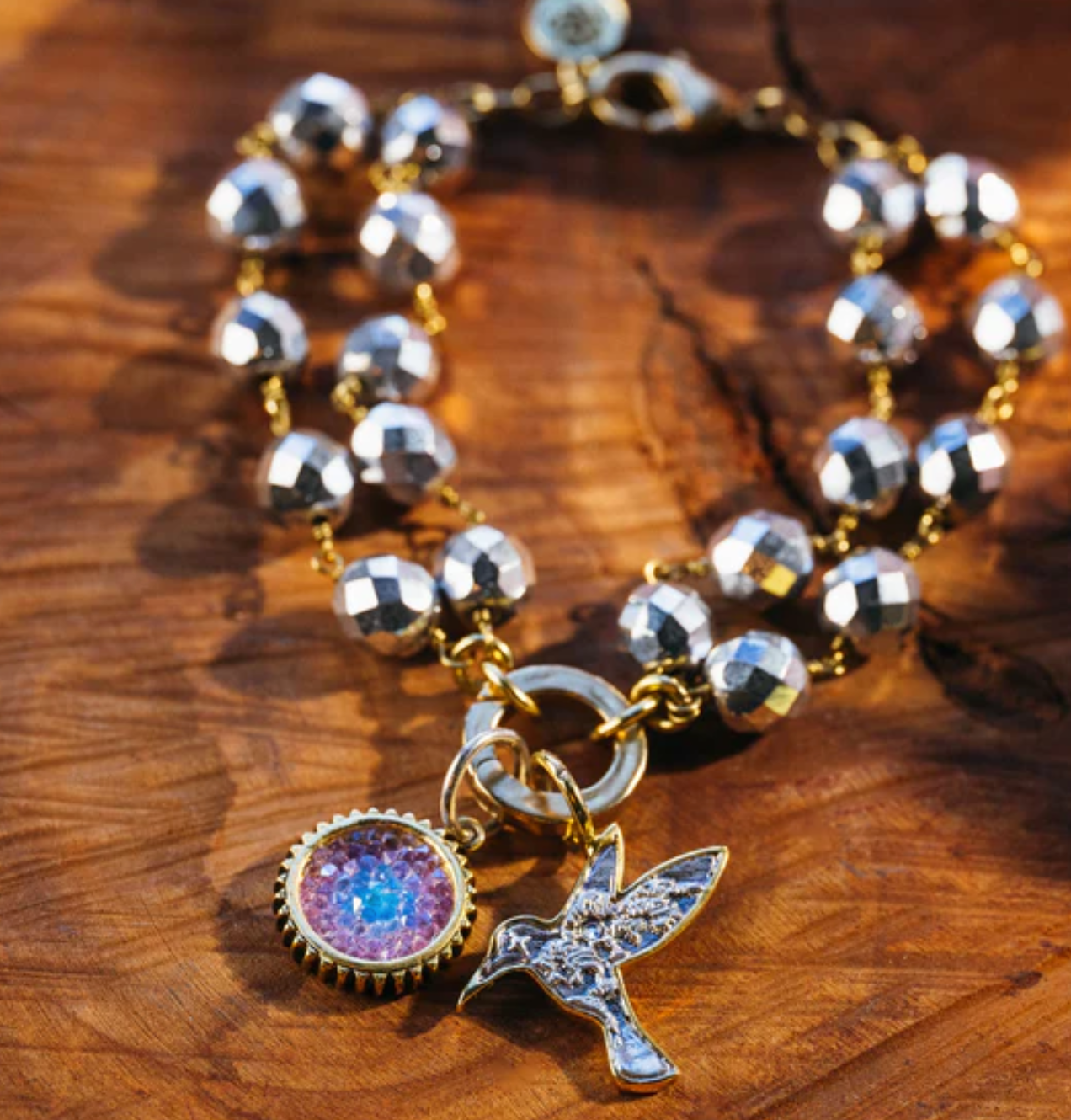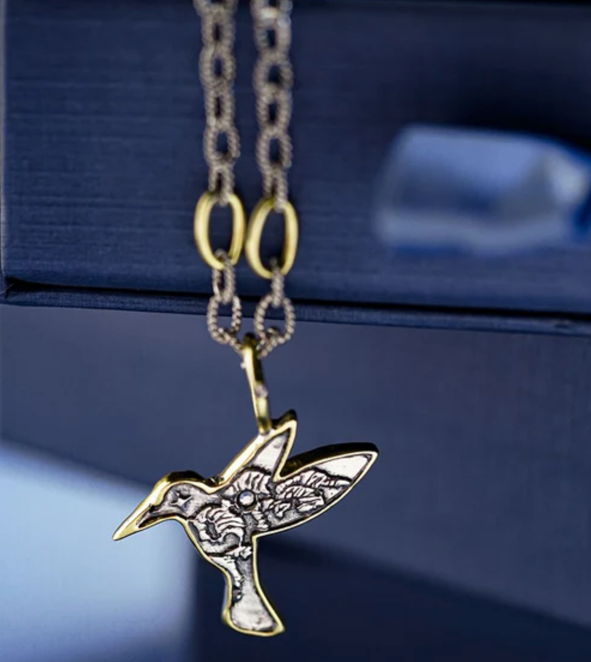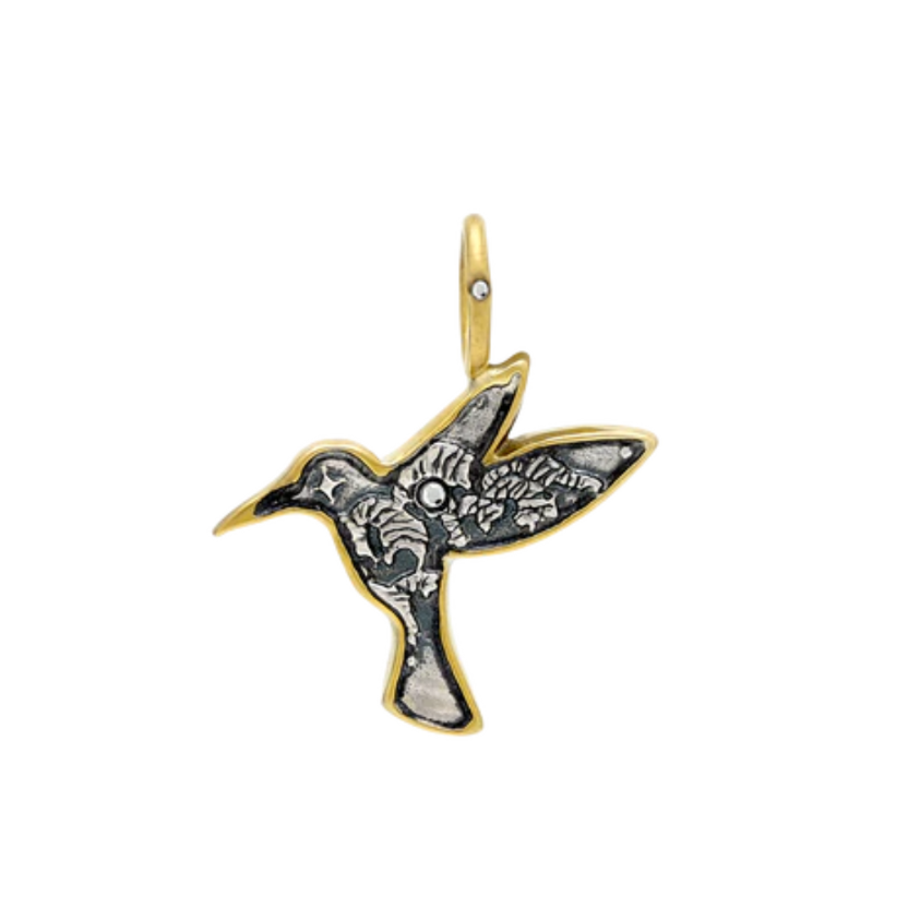 A messenger of light and a miracle of flight, Hummingbird hovers near, visiting when something amazing is being born. Gorgeously sculpted sterling silver is surrounded by golden polished brass in an artful charm that deeply resonates with the spiritual and the natural world. When Lightwing Hummingbird Charm is worn, a variety of messages from beyond are attracted and are yours to notice more keenly. (Just wing it and believe.)