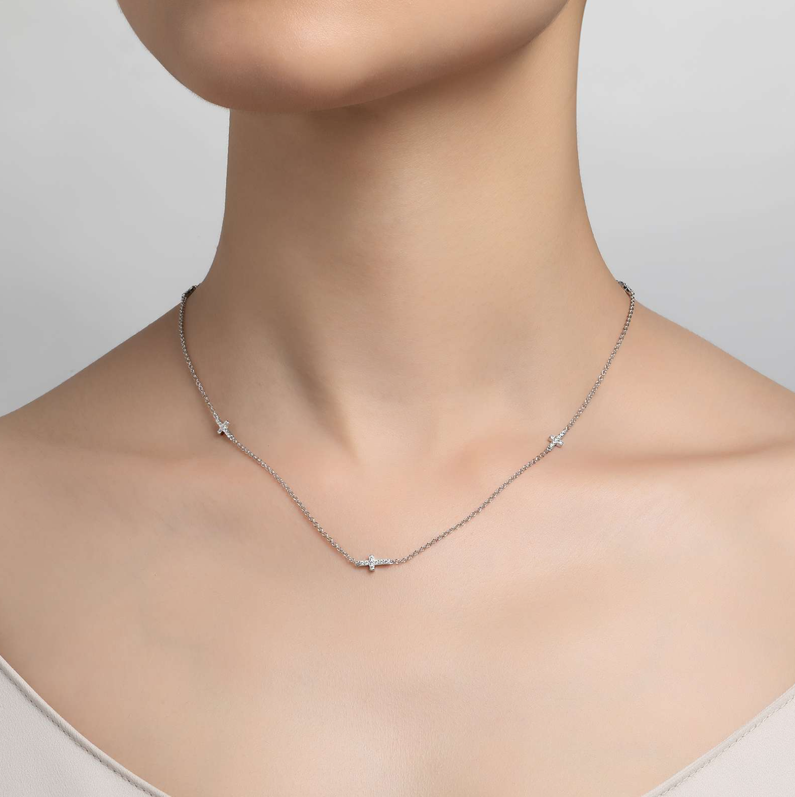 Simple yet charming. This necklace is set with Lafonn's signature Lassaire simulated diamonds in sterling silver bonded with platinum.