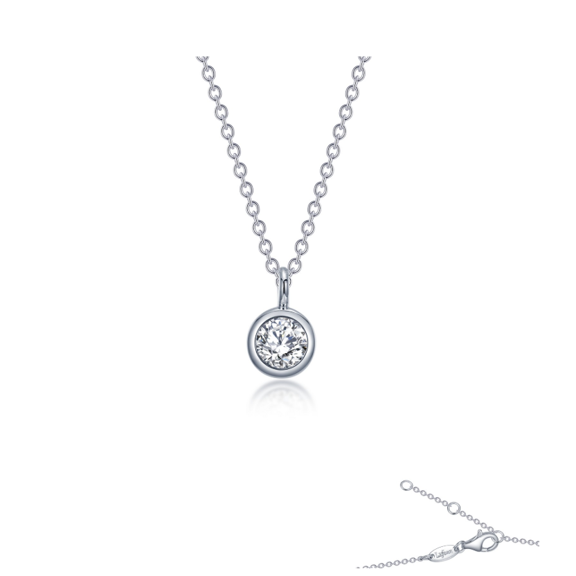 Dainty and charming. This adorable necklace features a dangling bezel-set Lafonn's signature Lassaire simulated diamonds in sterling silver bonded with platinum.