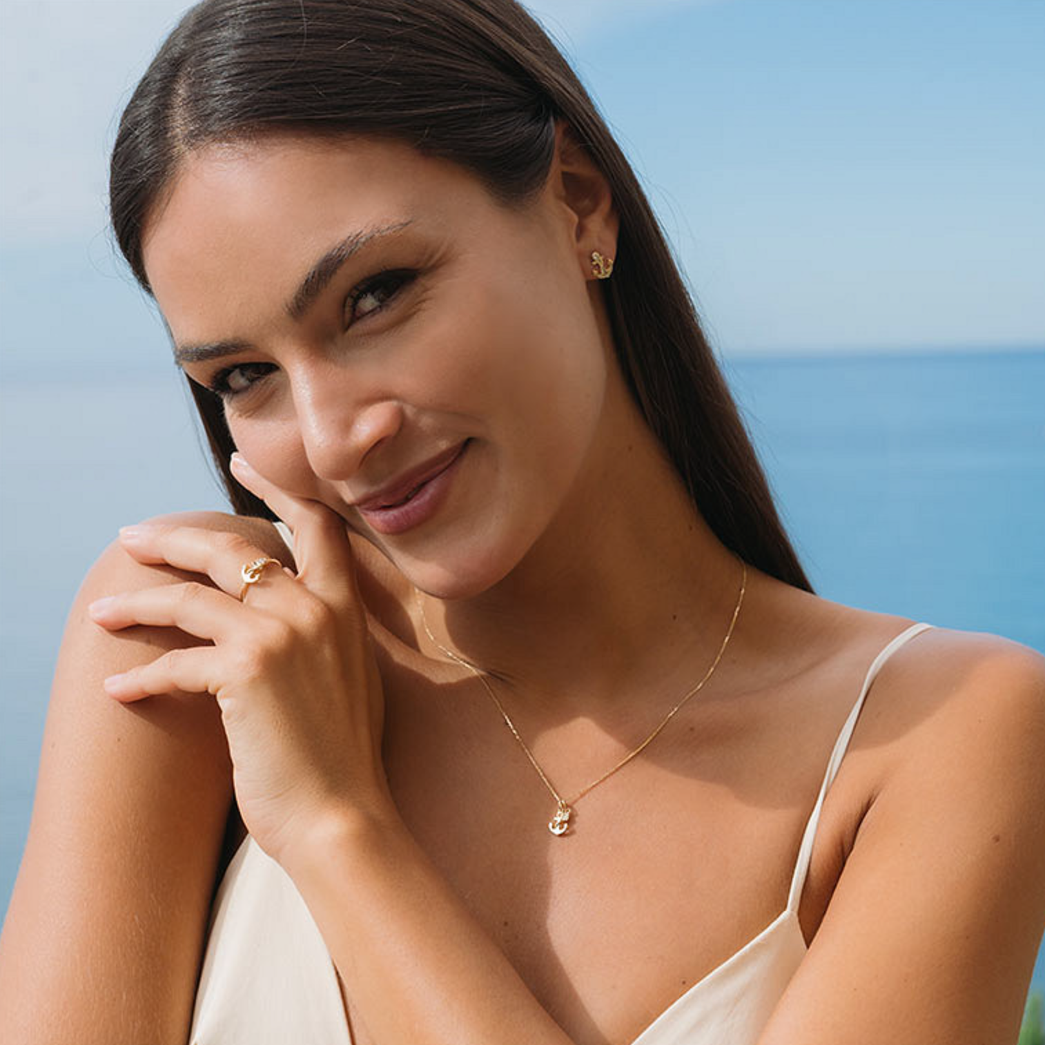 This 14kt gold necklace features a charming mini anchor pendant—a timeless symbol of strength and stability, paired with a bezel-set lab-grown diamond charm for a refined sparkle. The anchor design is detailed with a rope accent, adding a touch of nautical texture.