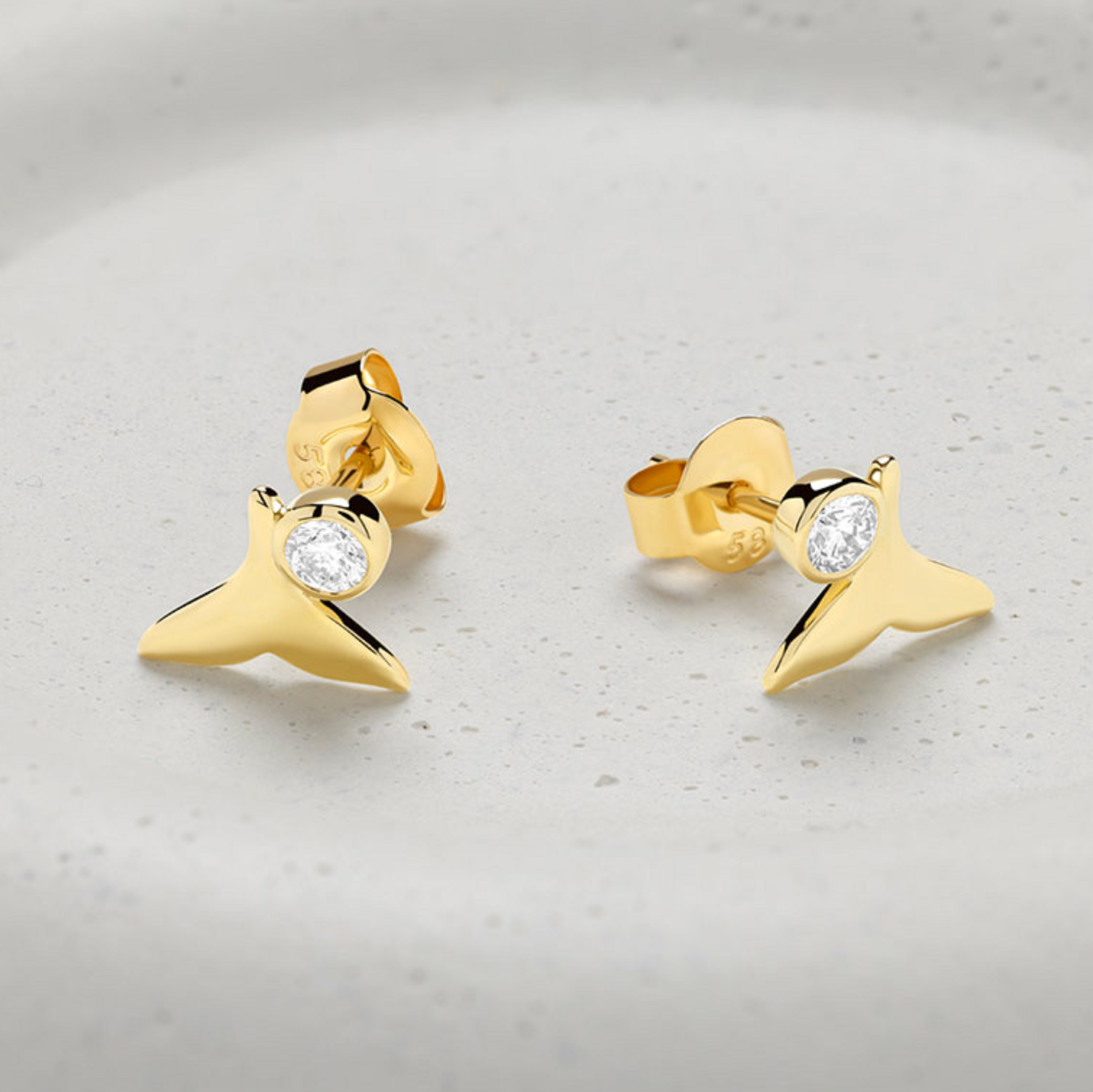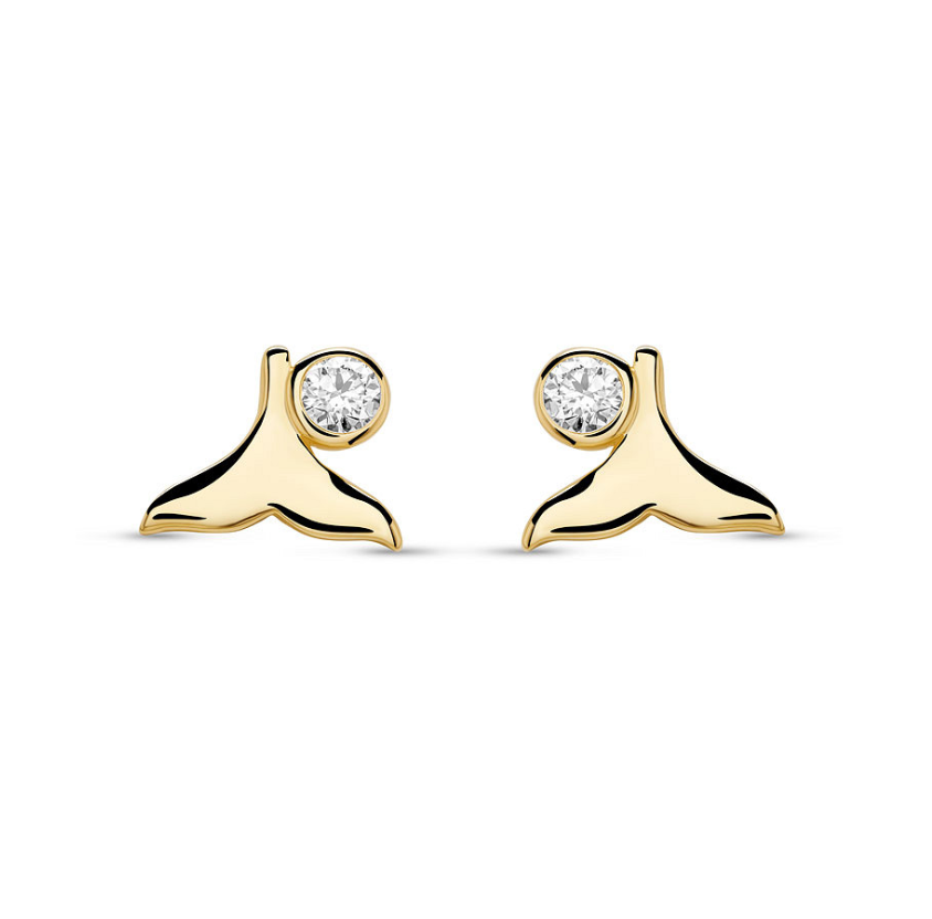 Crafted in 14kt gold, these stud earrings feature mini whale tail silhouettes accented with bezel-set lab-grown diamonds. The highly polished finish offers a clean, elegant look that resonates with ocean lovers and minimalist design seekers alike.