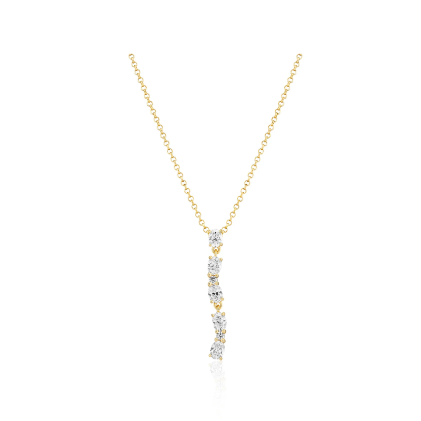 Necklace made of 18 karat gold plated 925 Sterling Silver, polished surface, and handset with facet cut white zirconia.